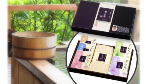 人気の温泉地、草津・登別・箱根・有馬・別府の薬用入浴剤5包とハンドタオルをセットした入浴セットです。自宅でぶらり湯めぐり紀行をお楽しみください。